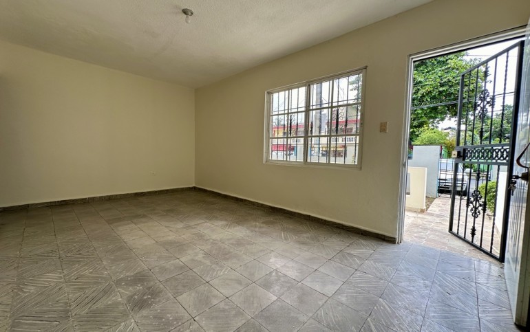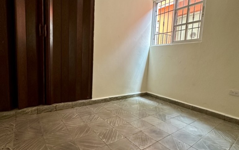 Apartamento de 3 habitaciones, 1 baño, sala-comedor, cocina compacta, galería y patio compartido con otra inquilina.